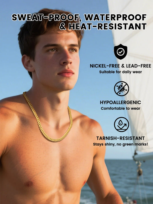 5Mm 18K Gold Filled Cuban Chain Necklaces, 30 Inch Heavy Chunky Stainless Steel Curb Necklace Hip Hop Punk Jewelry for Women